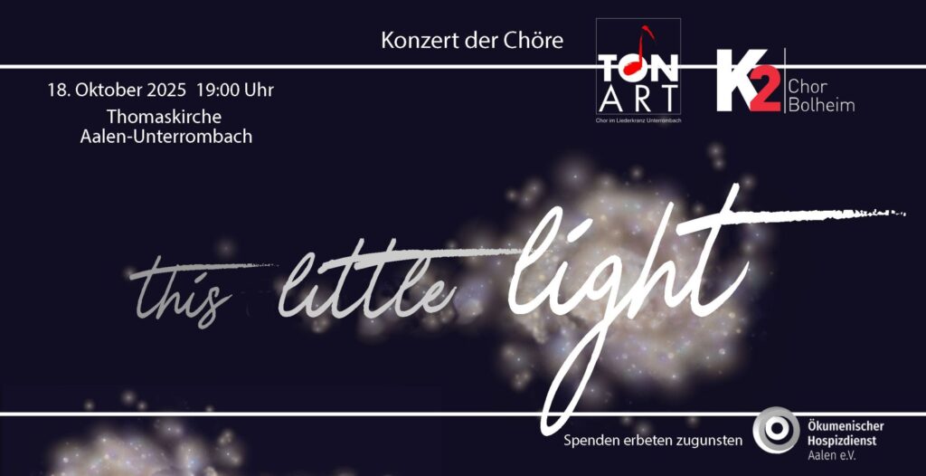 18. Oktober 2025 – 19.00 Uhr Thomaskirche Aalen-Unterrombach Ein Konzert der Chöre / K2 Chor BolheimundTONArt vom Liederkranz Unterrombach
